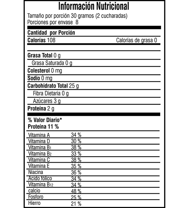 Cereal no alérgeno e instantáneo a base de arroz, maíz y avena, con adición de vitaminas y minerales adecuados para iniciar la alimentación complementaria en el niño a partir de los seis (6) meses de edad.