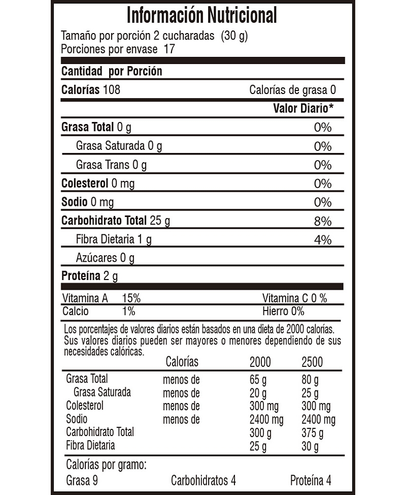 Se destaca el alto contenido en fibras que posee este cereal molido, así como la presencia de vitaminas A, B1, B5, C, E y K, además de una larga lista de minerales entre los que se destacan el calcio, fósforo, zinc, magnesio y potasio.